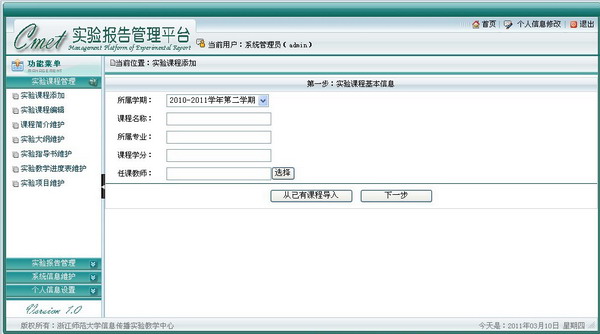 根据实验教学的特殊性,我们设计了一个以资源管理为核心,模块化课程管理为基础、多种在线交流方式为补充的实验教学支持平台。通过该教学支持平台,师生可以很方便的实现在线资源管理共享、课程信息发布、实验报告(作业)管理等功能,方便了教学过程的开展。